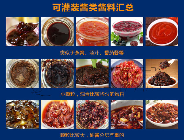 該雙頭顆粒醬料灌裝機采用活塞式氣缸氣動原理,適用于調(diào)味品中帶顆粒并且濃度較大的香菇醬、辣椒醬、豆瓣醬、花生醬、芝麻醬、果醬、牛油火鍋底料、紅油火鍋底料等較為粘稠醬類的灌裝。灌裝轉(zhuǎn)閥可以很具客戶物料定做加大,以適應(yīng)不同客戶物料的灌裝需求。